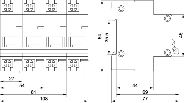 • Збільшена комутаційна здатність 10 кА дозволяє встановлювати автоматичні вимикачі ВА47-100 в якості вступних автоматичних вимикачів.
